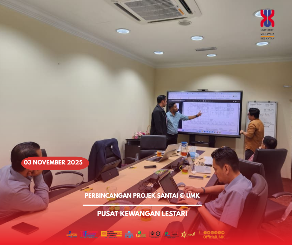 On 3 November 2025 (Monday), at 9:30 a.m., an initial discussion session for the Santai @ UMK Project was held at the Discussion Room, Office of the Vice-Chancellor.